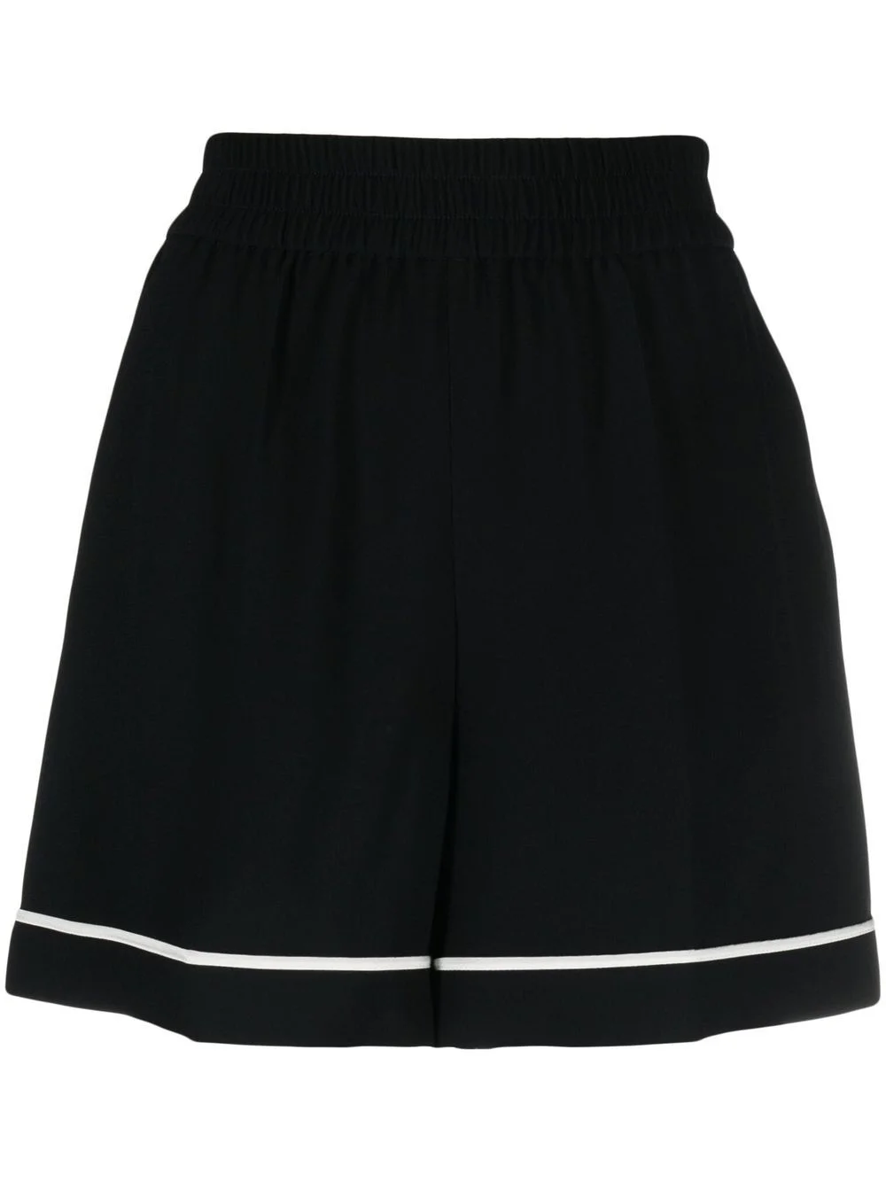 elasticated-waist thigh-leg shorts jet black contrasting trim high-waisted elasticated waistband two side slit pockets thigh-length Imported Composition Acetate 70%, Viscose 30% SIZE & FIT Measurement FRONT RISE 12.2 in(31 cm) HIPS 35.43 in(90 cm) Washing instructions Do Not Wash/Do Not Dry Clean