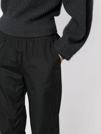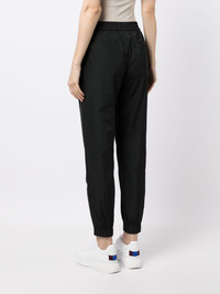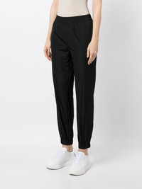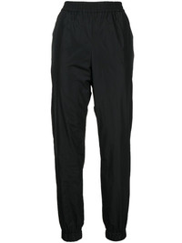 elasticated-waistband track pants black elasticated waistband two side slit pockets two rear welt pockets elasticated ankles Imported Composition Polyester 100% SIZE & FIT Model measurements Height 5 ft 11 in(1.8 m) Bust/Chest 28.34 in(72 cm) Hips 35.43 in(90 cm) Waist 23.62 in(60 cm) FittingInformation This piece fits true to size. We recommend you get your regular size Designed to be loose over the leg with a fitted waist and hem Made with a lightweight non-stretch fabric Washing instructions Dry Clean Only
