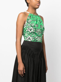 floral-print cropped top green cotton all-over floral print round neck rear tie fastening straight hem cropped Imported Composition Outer: Cotton 100% Lining: Cotton 100% SIZE & FIT Model measurements Height 5 ft 10 in(1.79 m) Bust/Chest 33.07 in(84 cm) Hips 35.03 in(89 cm) Waist 24.4 in(62 cm) FittingInformation This piece fits true to size. We recommend you get your regular size Cut for a slim fit Made with a mid-weight fabric Washing instructions Dry Clean Only