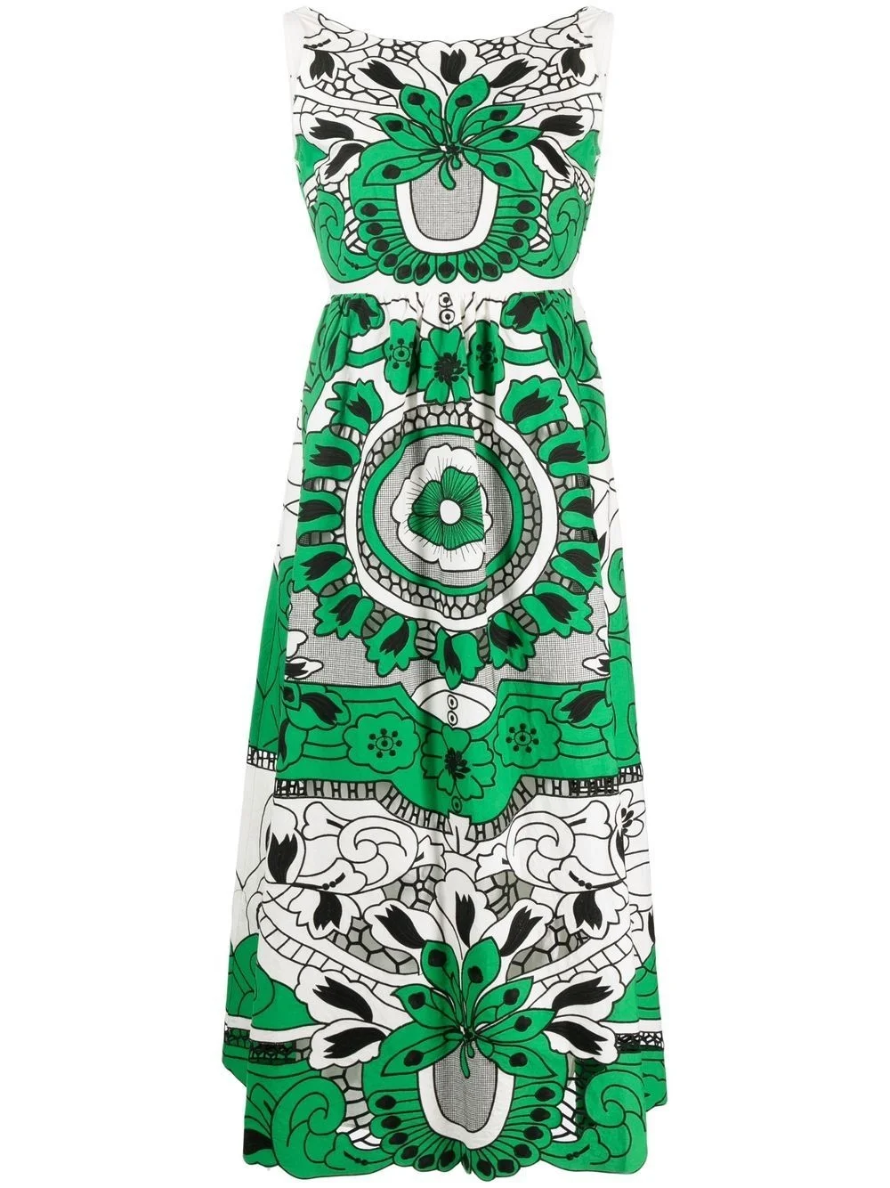 floral-print midi dress jade green/black/white cotton all-over floral print V-back sleeveless two diagonal pockets to the sides mid-length Imported Composition Cotton 100%, Polyester 100% Washing instructions Dry Clean Only