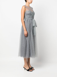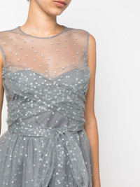 glitter-detail sleeveless midi dress Highlights - Grey - Tulle overlay - Glitter detailing - Semi-sheer panels - Front tie fastening - Rear zip fastening - Round neck - Sleeveless - Mid-length - Flared hem Imported Composition Outer: Polyamide 100% Lining: Acetate 64%, Polyester 36% SIZE & FIT Model measurements Height 5 ft 11 in(1.8 m) Bust/Chest 33.07 in(84 cm) Hips 37 in(94 cm) Waist 25.59 in(65 cm) FittingInformation Designed for a close fit at the chest and waist with a loose fit at the hip Made from a lightweight non-stretch fabric This piece fits true to size – take your usual size Washing instructions Dry Clean Only