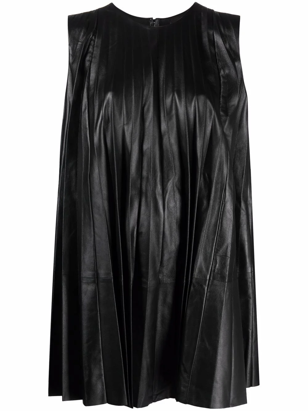 pleated leather shift dress