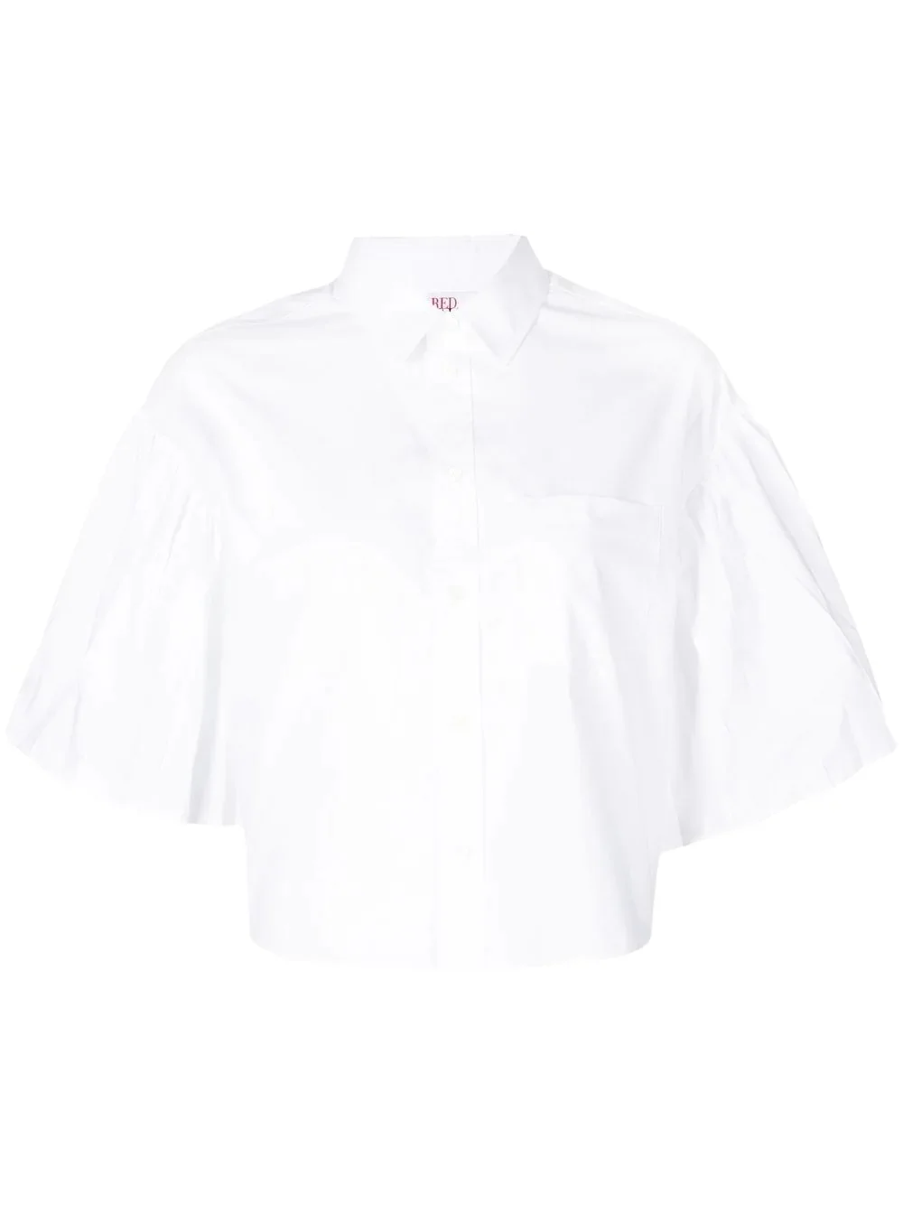 pleated-sleeve detail shirt cloud white cotton pleat detailing classic collar front button fastening chest patch pocket short wide sleeves straight hem Imported Composition Cotton 65%, Polyester 35% SIZE & FIT Model measurements Height 5 ft 9 in(1.74 m) Bust/Chest 31.49 in(80 cm) Hips 35.43 in(90 cm) Waist 24.8 in(63 cm) FittingInformation This piece fits true to size. We recommend you get your regular size Cut for a loose fit Made with a lightweight non-stretch fabric Washing instructions Dry Clean Only