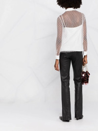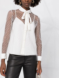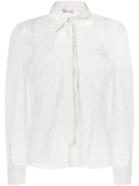 point d'esprit long-sleeved blouse RED Valentino continues to inject its pieces with a sense of delicacy, as is evidenced by this lightweight blouse that features the recognisable sheer dotted motif, the point d'esprit mesh. Imported Composition Polyester 100% SIZE & FIT Model measurements Height 5 ft 10 in(1.78 m) Bust/Chest 31.49 in(80 cm) Hips 37 in(94 cm) Waist 23.62 in(60 cm) FittingInformation This piece fits true to size. We recommend you get your regular size Cut for a loose fit. Comes with a slim-fitting slip Made with a mid-weight non-stretch fabric Washing instructions Dry Clean Only