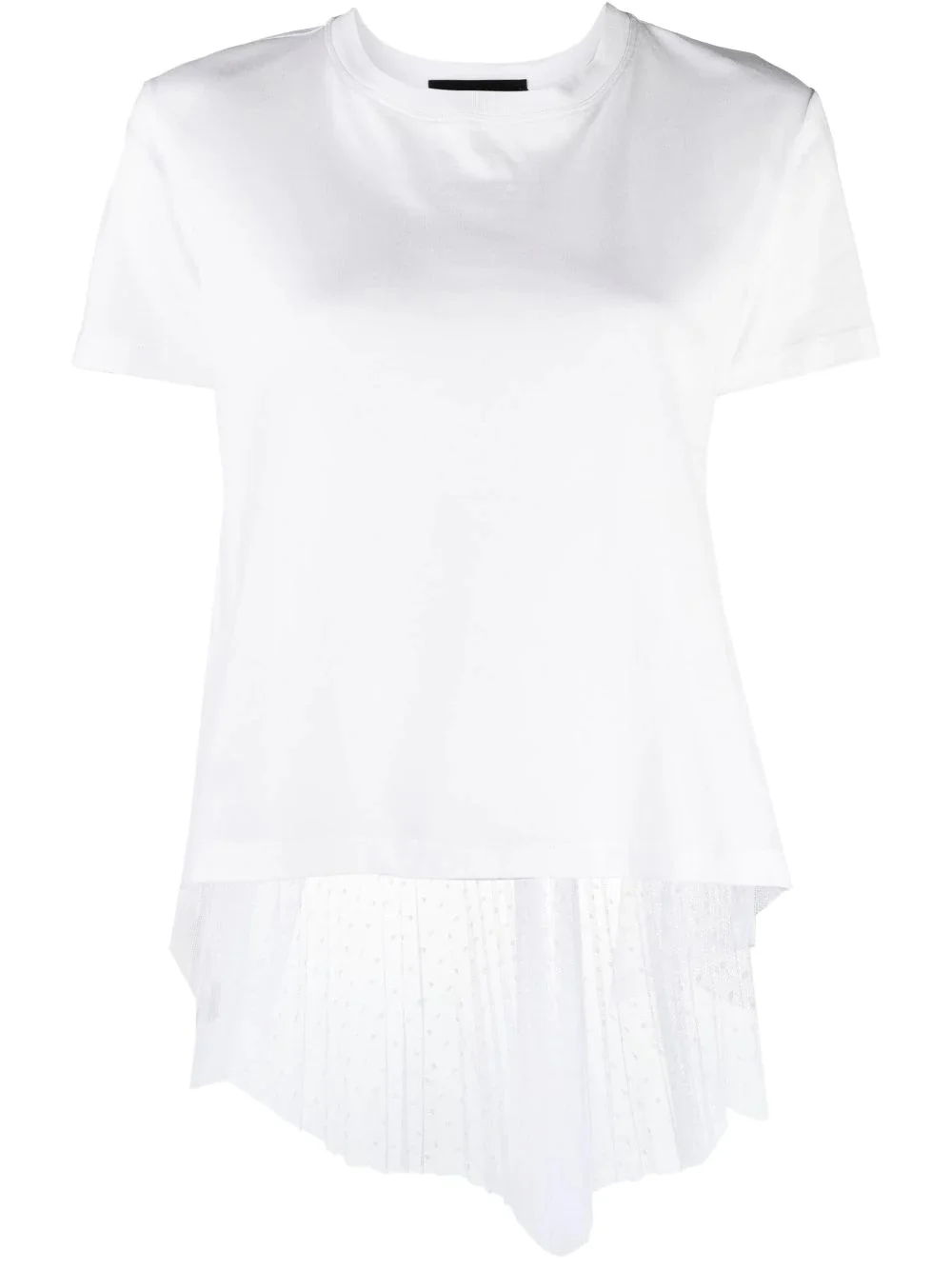 point d'esprit panel T-shirt This cropped short-sleeved T-shirt from RED Valentino's SS22 collection is elevated with a pleated point d'esprit tulle panel at the rear, a signature house code that channels its romantic and whimsical nature. Imported Composition Outer: Cotton 100%, Polyester 100% Lining: Polyamide 100% SIZE & FIT Model measurements Height 5 ft 10 in(1.77 m) Bust/Chest 32.67 in(83 cm) Hips 35.43 in(90 cm) Waist 23.62 in(60 cm) FittingInformation This piece fits true to size. We recommend you get your regular size Cut for a loose fit Made with a mid-weight fabric Washing instructions Dry Clean Only