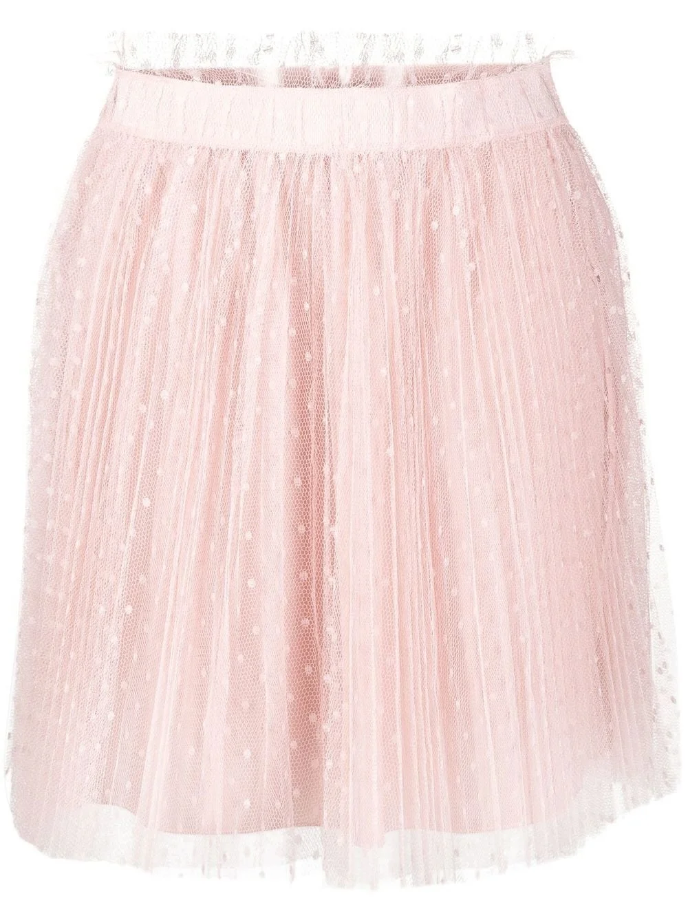 point d'esprit tulle pleated miniskirt Playful pleats are paired with point d'esprit tulle - a polka dot design that Valentino uses as a signature fabric, as showcased by this miniskirt from RED Valentino. The joyful construction is a prime example of the brand's romantic aesthetic. Imported Composition Polyester 100% Washing instructions Machine Wash