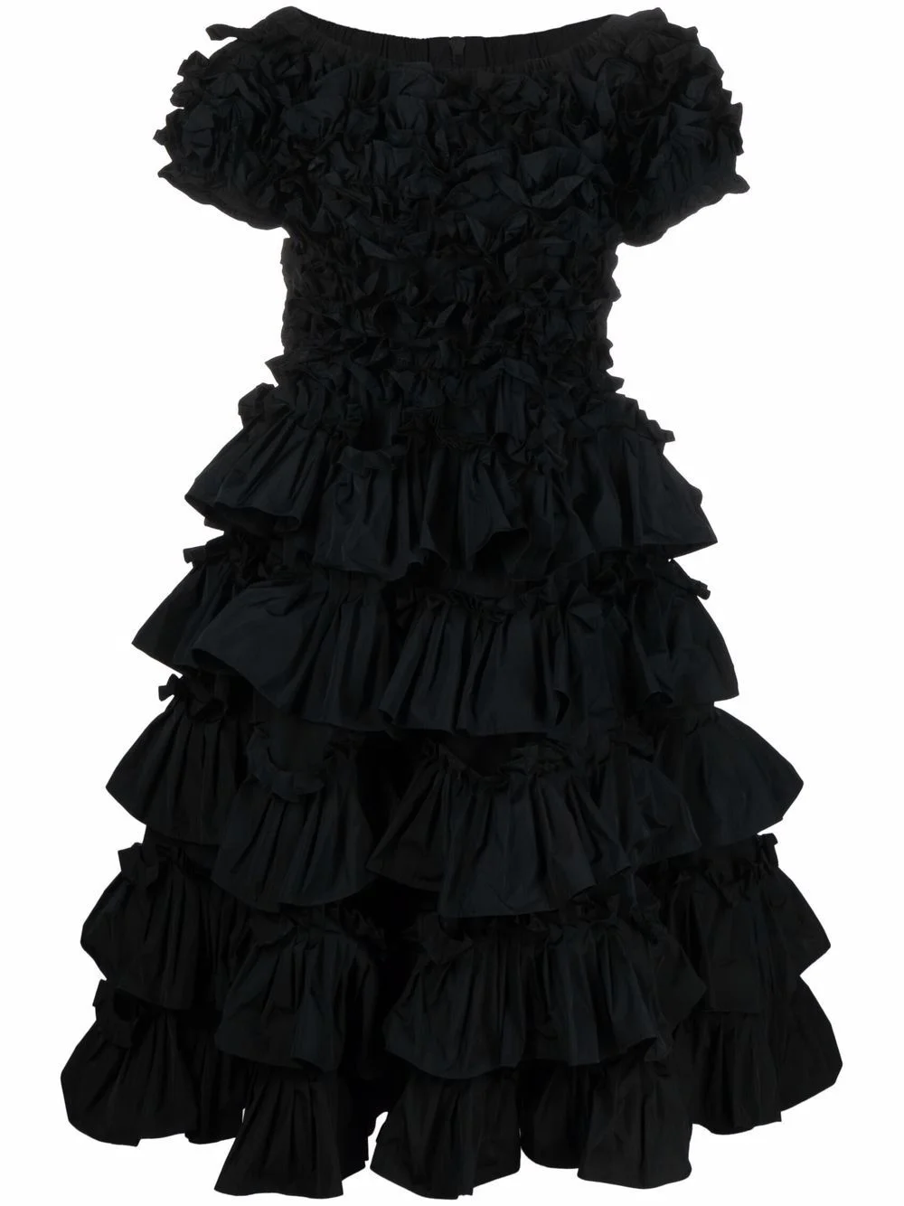 ruffled flared dress RED Valentino's romantic narrative is amped up this season as showcased on this flared dress that features voluminous ruffles - a key detail this SS22. Imported Composition Polyester 100% Washing instructions Dry Clean Only