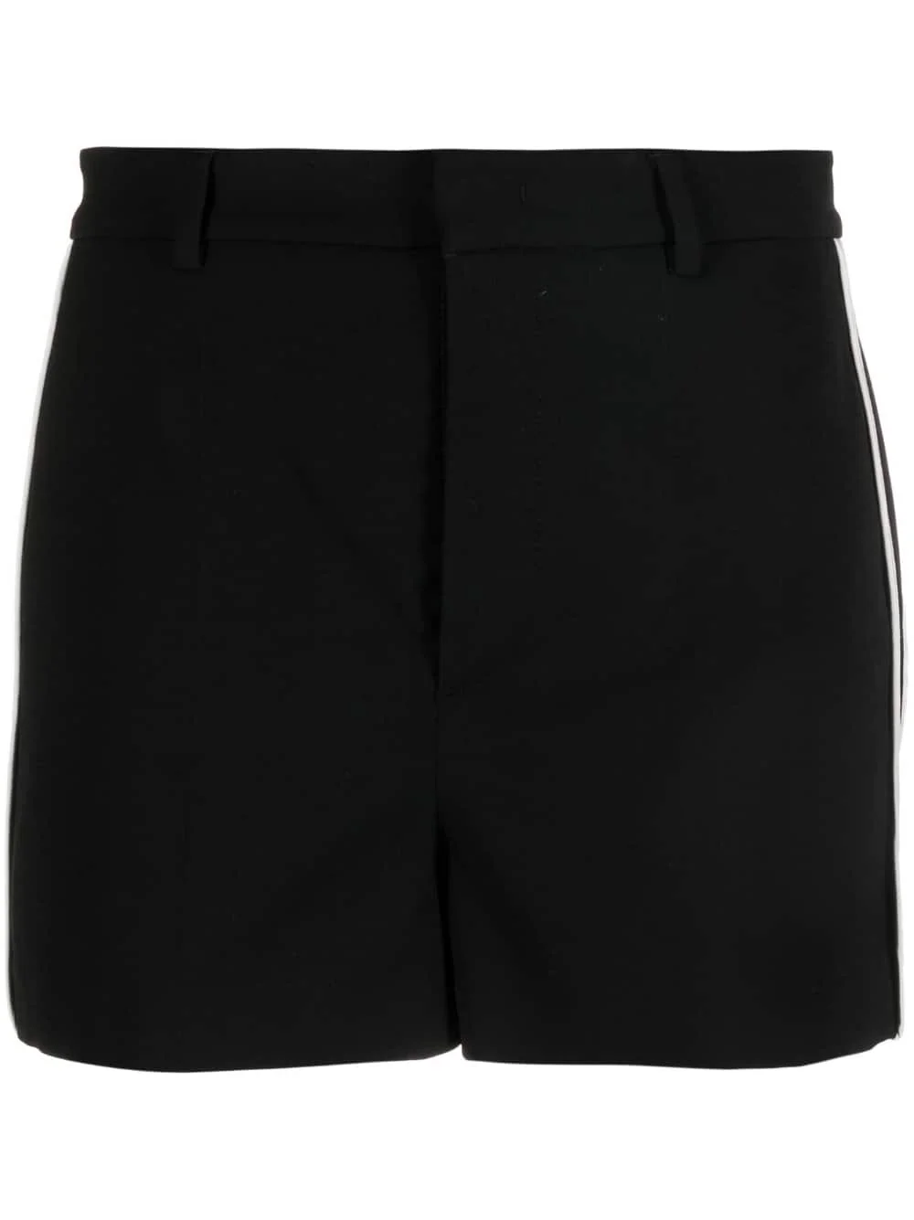 side-stripe tailored shorts Highlights - Black/milk white - Tailored design - Side stripe detailing - Belt loops - Concealed front fastening - Two side inset pockets - Two rear welt pockets - Thigh-length Imported Composition Outer: Polyester 100%, Viscose 60%, Wool 39%, Elastane 1% Lining: Viscose 59%, Cupro 41% Washing instructions Dry Clean Only