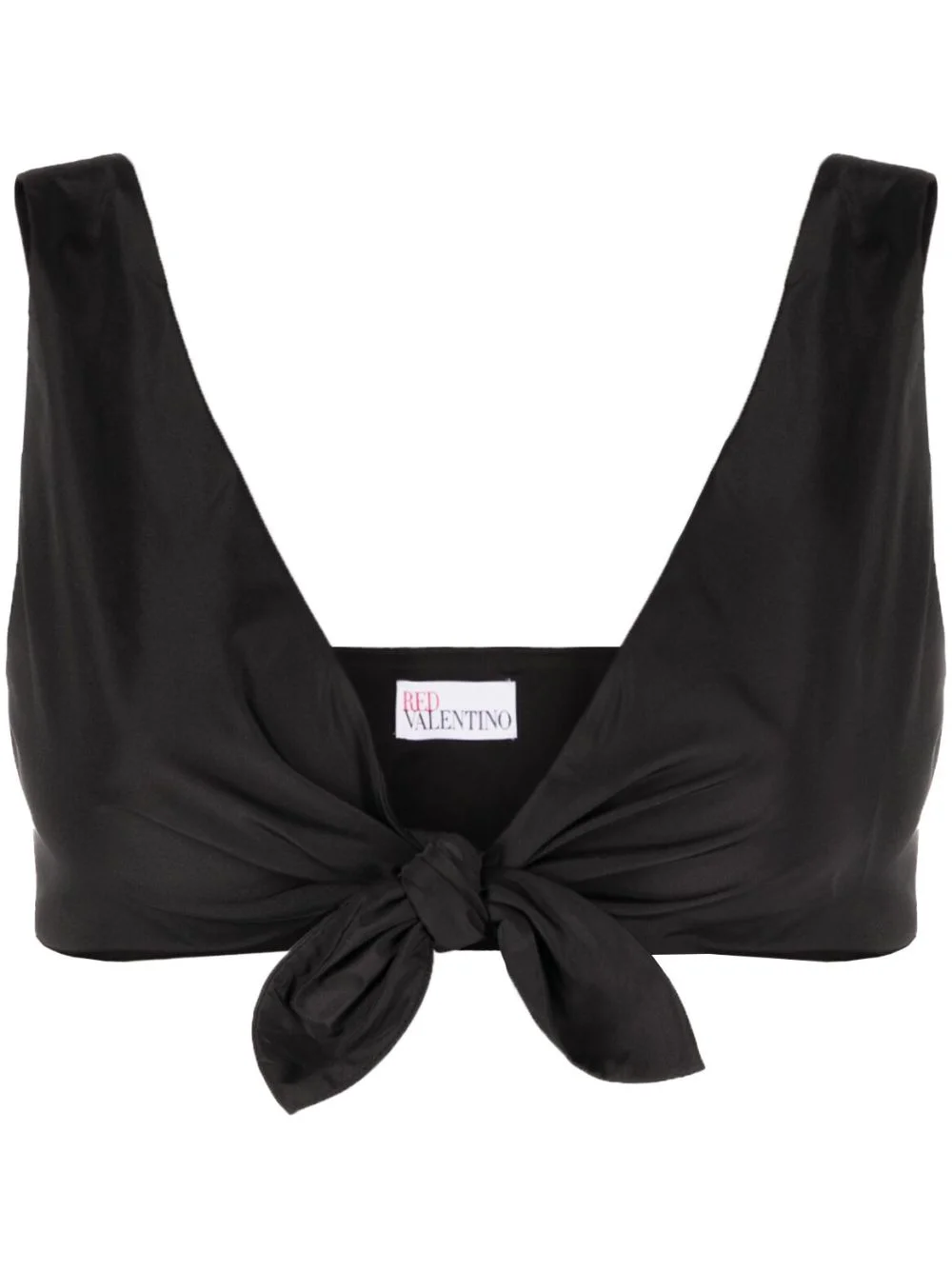 tie-front cropped tank top black high-shine finish front tie fastening V-neck sleeveless square open back cropped Imported Composition Outer: Polyester 100% Lining: Acetate 64%, Polyester 36% Washing instructions Dry Clean Only