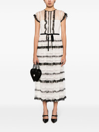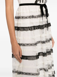 tulle d'esprit tulle midi dress Highlights - Black/white - Point d'esprit tulle - Pintuck detailing - Bow detailing - Lace trims - Round neck - Cap sleeves - Tiered skirt - Keyhole detail to the rear - Full lining Imported Composition Polyester 100% SIZE & FIT Model measurements Height 5 ft 10 in(1.77 m) Bust/Chest 31.49 in(80 cm) Hips 35.43 in(90 cm) Waist 25.19 in(64 cm) FittingInformation Designed for a close fit at the chest and waist with a loose fit at the hip The detachable slip sits just away from the body, offering a close yet comfortable fit Made from a midweight non-stretch fabric, this piece offers minimal elasticity when worn This piece fits true to size – take your usual size Washing instructions Hand Wash
