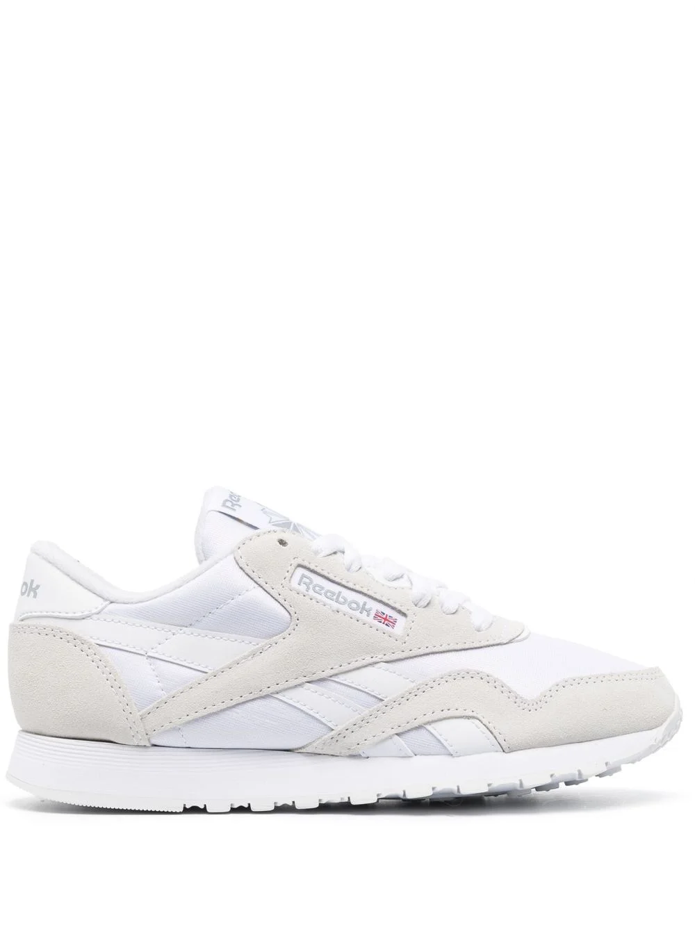 Classic low-top sneakers Highlights - Cloud white/beige - Calf leather - Suede panelling - Logo patch at the tongue - Logo print to the side - Almond toe - Front lace-up fastening - Branded heel counter - Flat rubber sole Imported Composition Leather 100% SIZE & FIT Measurement HEEL 0.98 in(2.5 cm)