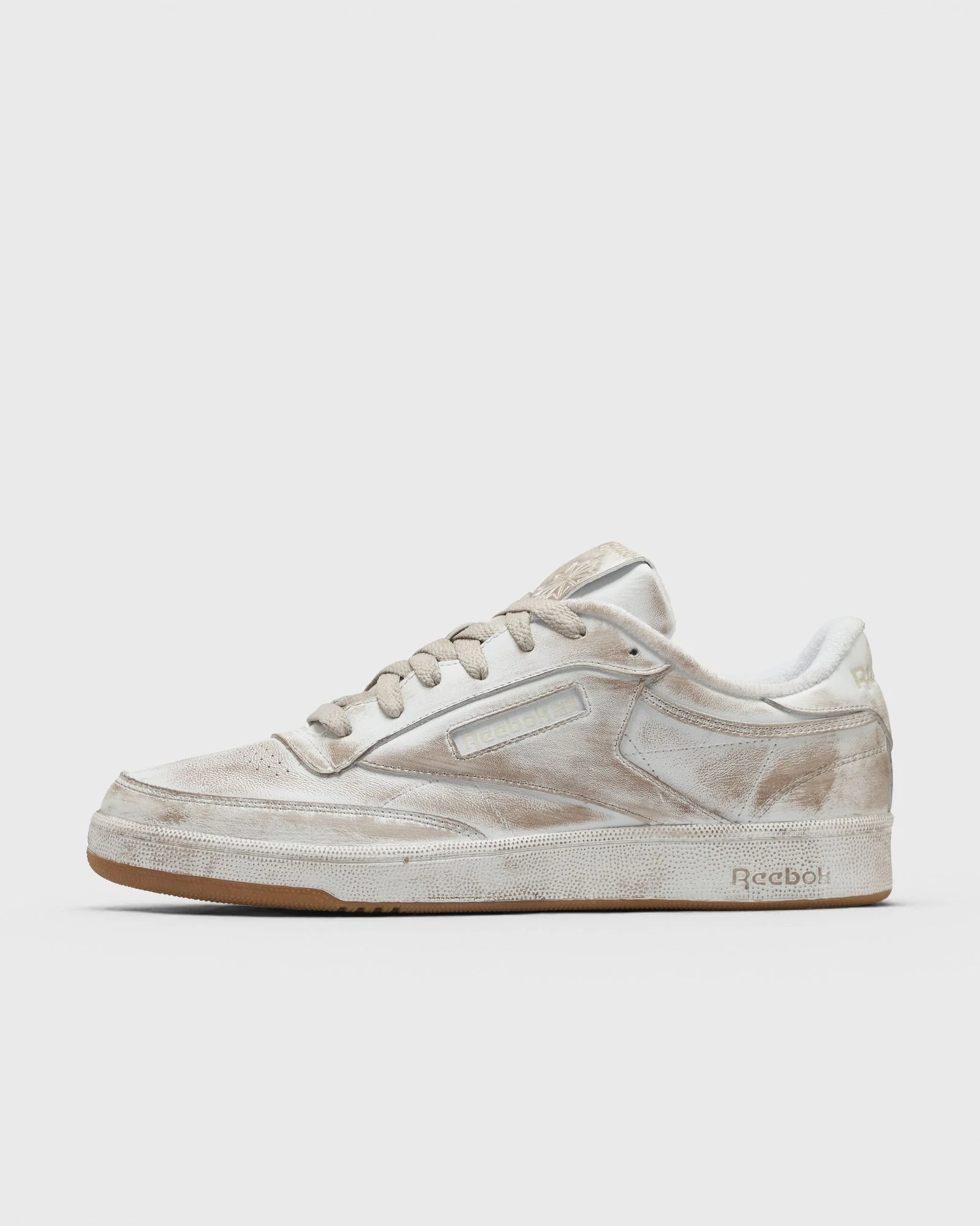 The Reebok Club C model first appeared on the sneaker market in 1985 and has been one of the most popular silhouettes in the Reebok Classics series ever since. The Reebok Club C has a soft leather upper with a used look and side stripe branding. - Lace-up closure - Textile lining - Durable rubber outsole Article number: 100261846P Gender: men,women Color: FTWR WHITE/FTWR WHITE/LINEN Material: 30% Rubber, 70% Leather