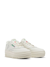 Club C Extra platform sneakers Reebok takes its iconic Club C sneakers to new heights with this Extra iteration. The original 1985 silhouette remains, now sitting atop a rubber platform sole for an amplified look. A nod to the tennis-inspired style, the rubber outsole is patterned with a 3D tennis racket effect. Highlights - Chalk white/bright green - Leather - Panelled design - Logo patch to the side - Branded heel counter - Logo-print tongue - Front lace-up fastening - Perforated toebox - Round toe - Platform sole - Rubber sole Imported Composition Outer: Leather 100%, Nylon 100% Sole: Rubber 100% Lining: Fabric 100%