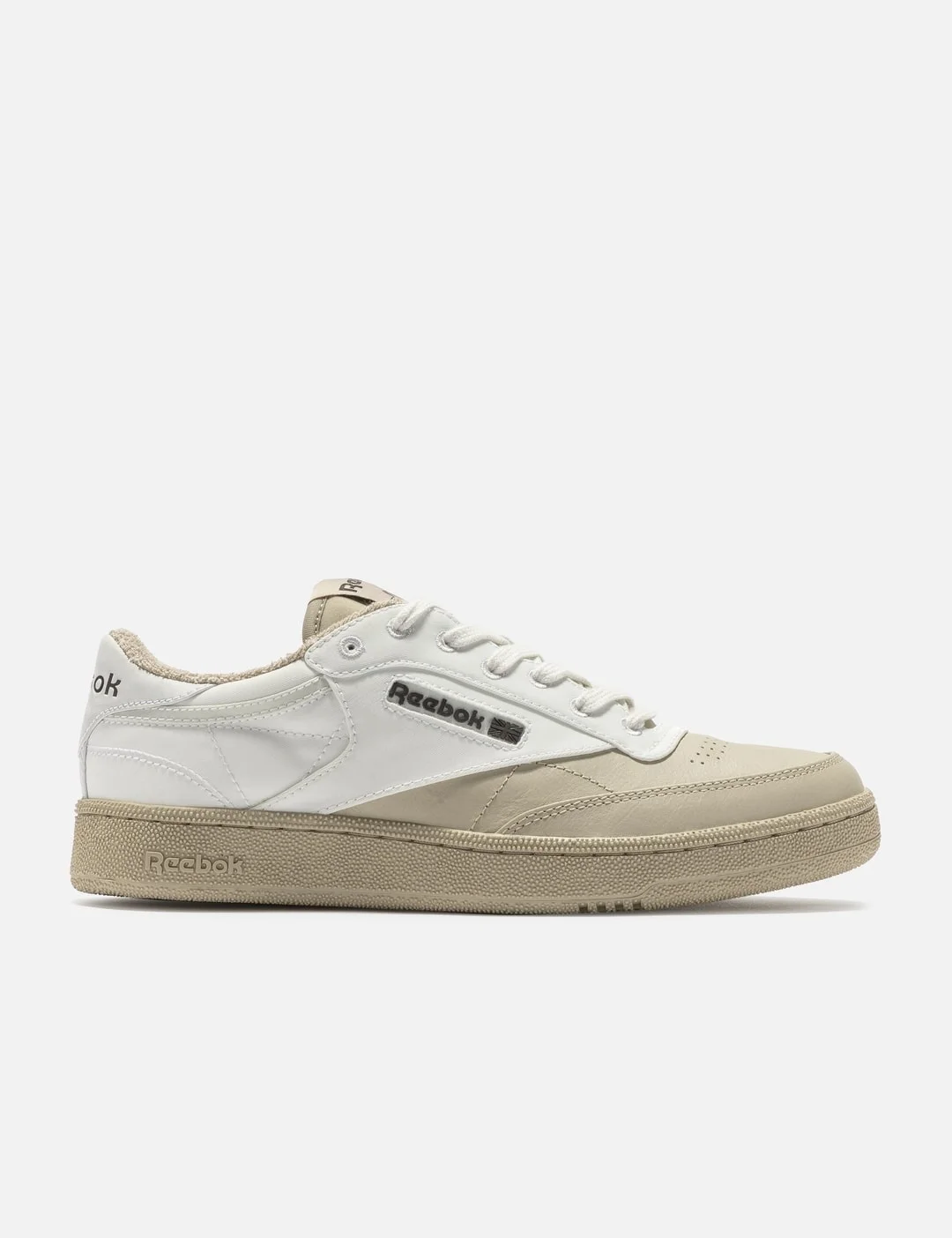 - Reebok - Club C Panelled Sneakers - Leather upper with textile panels - Lace-up closure - Perforated toe - Logo in raised texture on lateral side - Branded and padded tongue and heel patch - Soft fabric lining - Rubber outsole - Color: Beige/Pale Blue - Material: Leather, Textile, Rubber - See more Sneakers and Shoes