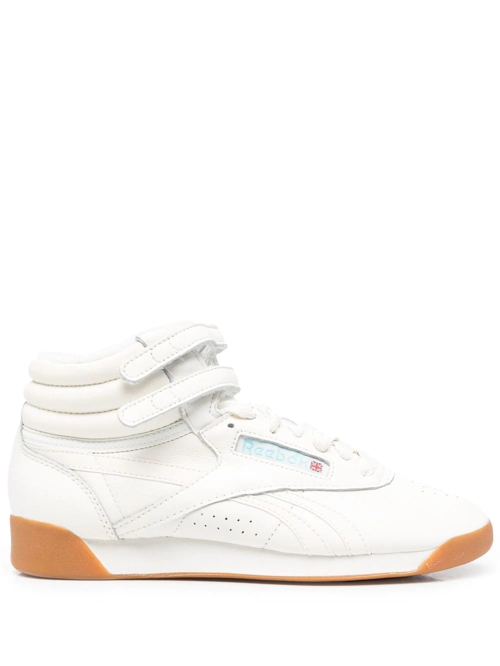Chalk white F/S high-top sneakers from REEBOK featuring perforated detailing, round toe, front lace-up fastening, ankle touch-strap fastening and chunky rubber sole. Highlights - Chalk white - Perforated detailing - Round toe - Front lace-up fastening - Ankle touch-strap fastening - Chunky rubber sole Imported Composition sole: Rubber 100% lining: Fabric 100% outer: Calf Leather 100% Product measurements for size: 6.5 (US) Heel: 3 cm (1.2 in) Height: 8 cm (3.1 in) Sole height: 1.5 cm (0.6 in)