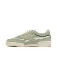 Low-top buffed leather and suede sneakers in green. · Perforated detailing at toe · Lace-up closure · Logo patch at padded tongue · Padded collar · Graphic appliqué at sides · Inset logo patch at outer side · Logo embossed at heel tab · Terrycloth lining · Logo embossed at textured midsole · Treaded rubber sole Supplier color: Vingre/Chalk/Tregre