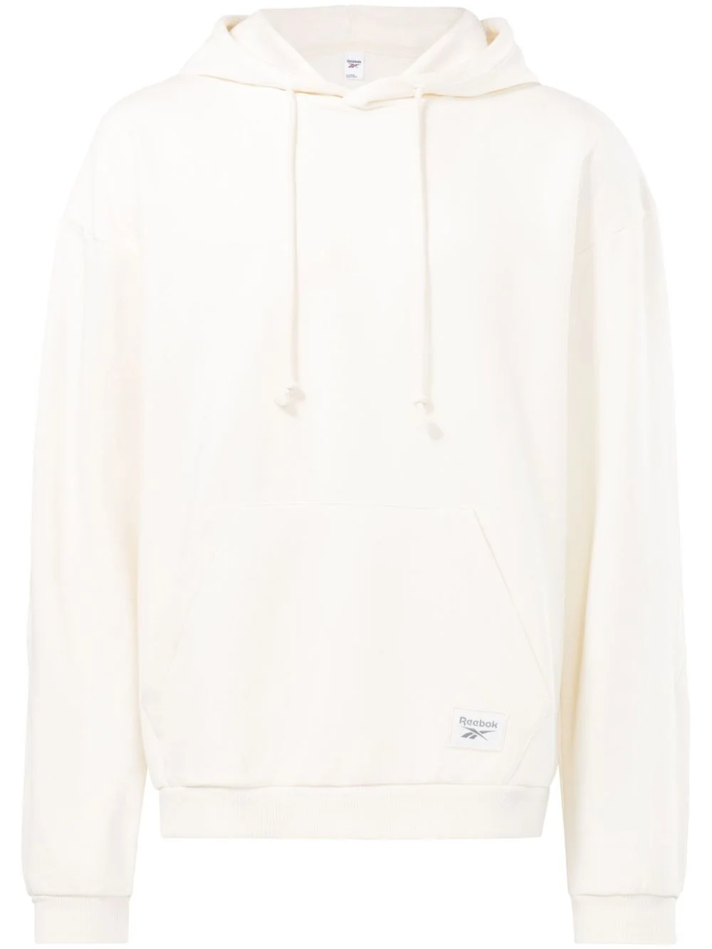 logo-patch pouch-pocket hoodie Free from any embellishments, aside from the sutble logo patch at the hem, this hoodie showcases Reebok's minimal side. It is spun from a cotton blend in an off-white hue and complete with a front pouch pocket. Highlights - Off-white - Cotton blend - Logo patch to the front - Drawstring hood - Long sleeves - Front pouch pocket - Ribbed cuffs and hem - Straight hem - When buying this unisex item, keep in mind that it is graded in standard men's sizing. Imported Composition Cotton 70%, Recycled Polyester 30% Washing instructions Machine Wash