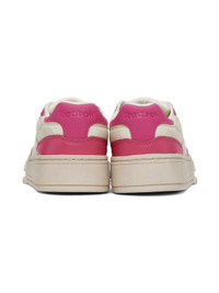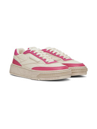 Low-top grained leather sneakers in off-white and pink. · Perforated detailing at toe and sides · Lace-up closure · Logo embossed at padded tongue · Padded collar · Logo flag at outer side · Logo embossed at heel counter · Canvas lining · EVA foam rubber midsole · Treaded rubber outsole Supplier color: Vintage pink