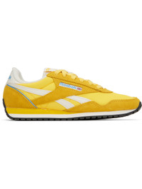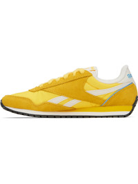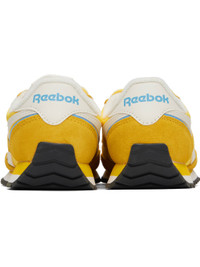 Low-top suede and canvas sneakers in yellow. · Buffed leather trim throughout · Lace-up closure · Logo flag at padded tongue · Padded collar · Signature stripes at sides · Inset logo patch at outer side · Logo printed at heel tab · Piping in blue at heel counter · Terrycloth lining · Foam rubber midsole · Treaded rubber sole Supplier color: Golden haze/Golden haze/Chalk Upper: textile, leather. Sole: rubber. Made in Viet Nam 251749F128042