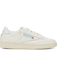 Low-top grained leather sneakers in off-white. · Perforated detailing at toe · Lace-up closure · Logo patch at padded tongue · Padded collar · Inset logo patch at outer side · Logo printed at heel tab · Terrycloth lining · Treaded rubber sole Supplier color: Chalk/Alabas/Skyblu Upper: leather. Sole: rubber. Made in Viet Nam 251749F128037