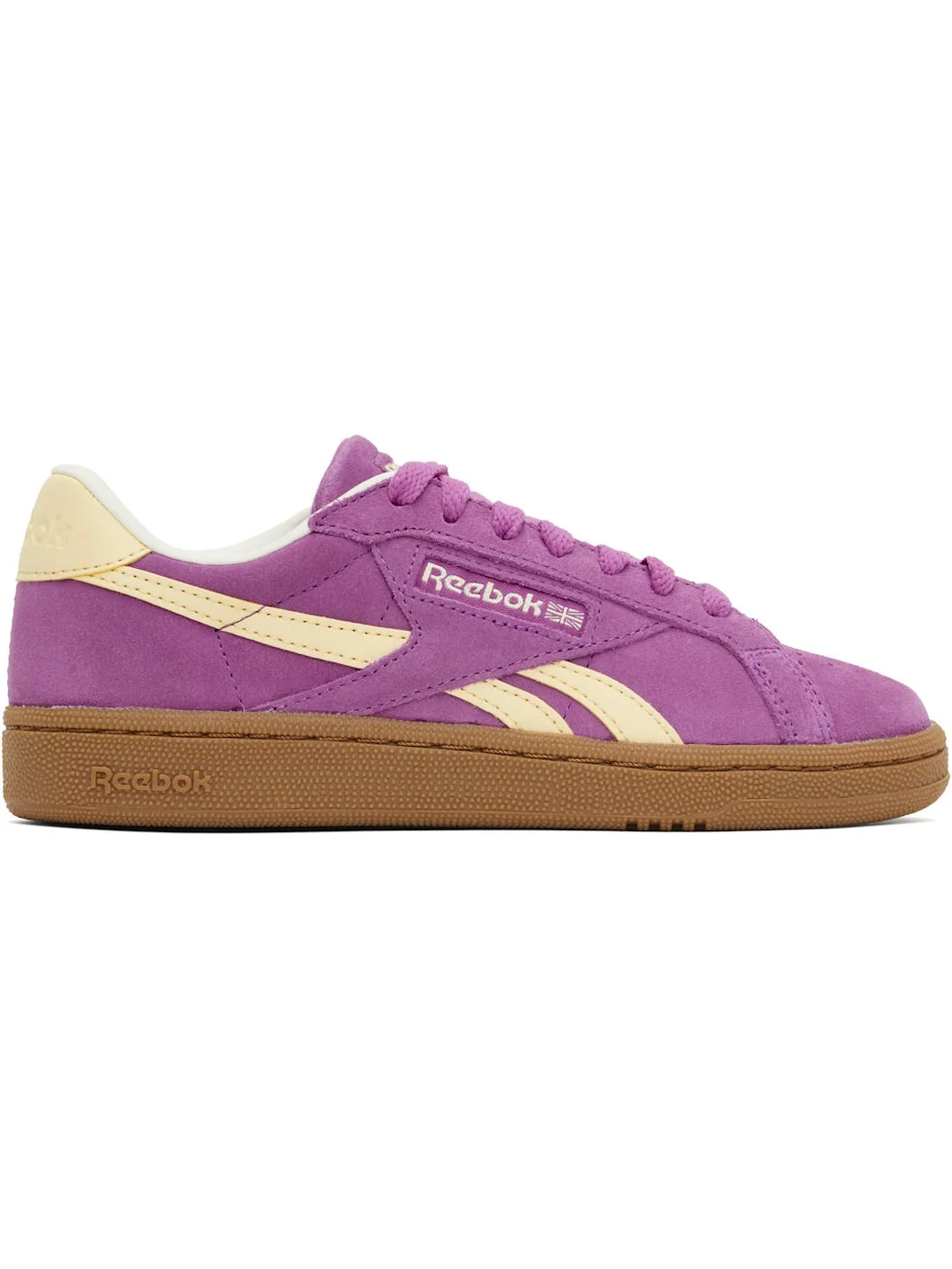 Low-top suede sneakers in purple. · Perforated detailing at toe · Lace-up closure · Logo embossed at padded tongue · Padded collar · Inset logo patch at outer side · Signature stripes at sides · Logo embossed at heel tab · Grained leather lining · Logo embossed at textured rubber midsole · Treaded rubber sole Supplier color: Purplerave/Bleachedyellow/Chalk Upper: leather. Sole: rubber. Made in Viet Nam 251749F128055