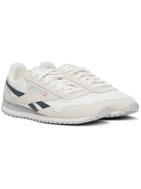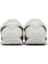 Low-top suede and canvas sneakers in white and gray. · Lace-up closure · Logo patch at padded tongue · Padded collar · Signature stripes at sides · Inset logo patch at outer side · Logo printed at heel tab · Terrycloth lining · Treaded rubber sole Supplier color: Chalk/Chalk/Grey5 Upper: leather, textile. Sole: rubber. Made in Viet Nam 251749F128044
