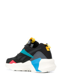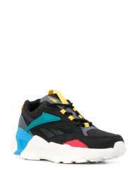 Aztrek Double Nu Pops sneakers Black Aztrek Double Nu Pops sneakers from Reebok featuring a panelled colour block design, a chunky rubber sole, a lace-up front fastening and a round toe. POSITIVELY CONSCIOUS: Adidas Group scores 4 out 5 by independent ethical brand rating agency Good On You. It uses eco-friendly materials in many products - 100% of its cotton is from sustainable sources and it's committed to use 100% recycled polyester by 2024. It traces and audits almost all of its supply chain to ensure good labour standards, and has committed to reduce carbon and water stress across its whole supplier base. Imported Composition Lining: Polyester 100% Outer: Rubber 100% Sole: Rubber 100%