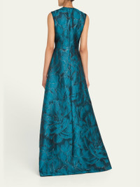 Jewel-Neck Sleeveless Floral Brocade Gown