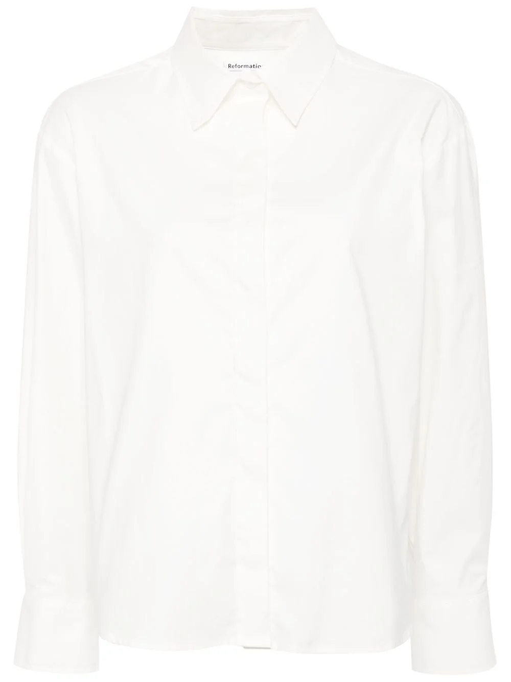 Andy organic-cotton shirt Highlights - White - Stretch organic cotton - Straight-point collar - Front button fastening - Drop shoulder - Long sleeves - Buttoned cuffs - Curved hem Imported Composition Organic Cotton 98%, Spandex/Elastane 2% SIZE & FIT Model measurements Height 5 ft 10 in(1.78 m) Bust/Chest 32.67 in(83 cm) Hips 37 in(94 cm) Waist 25.59 in(65 cm) FittingInformation Designed for an oversized fit, offering additional room throughout Made from a midweight stretch fabric, this piece offers elasticity and flexibility when worn This piece fits true to size – take your usual size