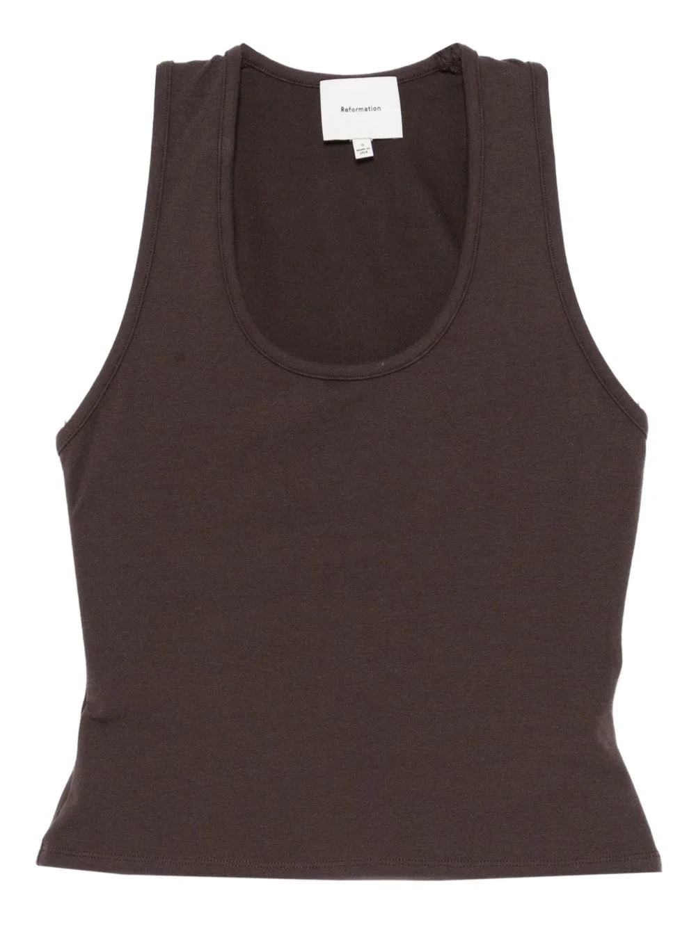Archie tank Highlights - Dark brown - Scoop neck - Sleeveless Made in United States Composition Organic Cotton 88%, Spandex/Elastane 12% SIZE & FIT Model measurements Height 5 ft 10 in(1.77 m) Bust/Chest 30.31 in(77 cm) Hips 36.22 in(92 cm) Waist 24.8 in(63 cm) FittingInformation Designed for a close fit throughout Made from a midweight stretch fabric, this piece offers elasticity and flexibility when worn Washing instructions Machine Wash