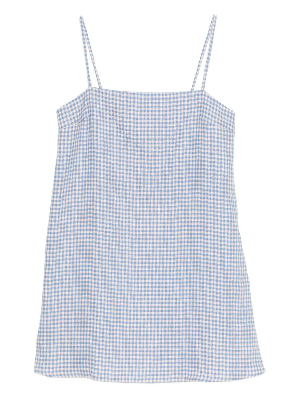 Aubree dress Highlights - Sky blue - Rear tie fastening - Plaid check pattern Imported Composition Linen/Flax 100% SIZE & FIT Model measurements Height 5 ft 10 in(1.77 m) Bust/Chest 30.31 in(77 cm) Hips 36.22 in(92 cm) Waist 24.8 in(63 cm) FittingInformation Designed for a relaxed fit, this piece allows for comfort and movement when worn Made from a midweight non-stretch fabric Washing instructions Machine Wash