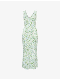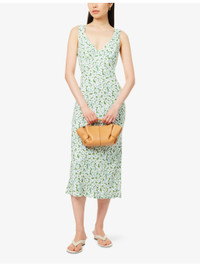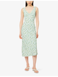 PRODUCT DETAILS - Reformation crepe midi dress - 100% viscose - Regular fit, V-neck, sleeveless, adjustable buttoned straps, gathered cups, all-over floral print, A-line silhouette - Dry clean only - True to size - Size small: length 48in / 121cm - Model is 5ft 10in/1.78m and wears a size small - Lightweight, non-stretch Ref: R04477895