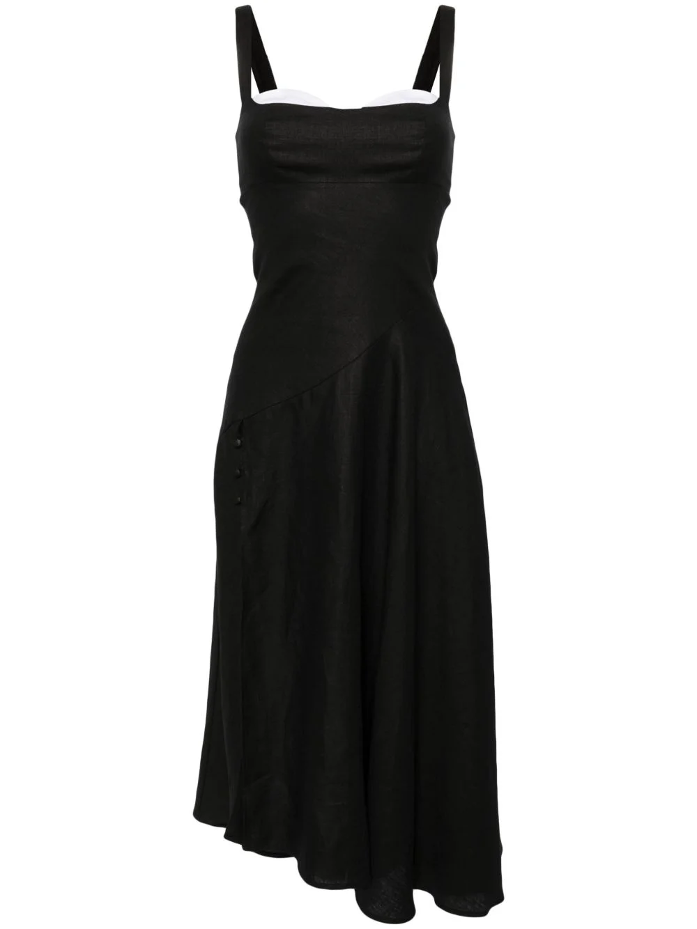 Bekki linen dress Highlights - Black - Linen - Side slit - Asymmetric hem - Sweetheart neck - Sleeveless - Mid-length Imported Composition Linen/Flax 100% SIZE & FIT Model measurements Height 5 ft 10 in(1.78 m) Bust/Chest 32.67 in(83 cm) Hips 37 in(94 cm) Waist 25.59 in(65 cm) FittingInformation Designed for a close fit at the chest and waist with a loose fit at the hip The adjustable shoulder straps allow for a preferred fit when worn Made from a midweight non-stretch fabric This piece fits true to size – take your usual size Washing instructions Machine Wash