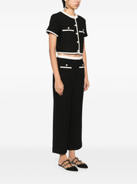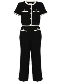 Blair suit Highlights - Black - Tweed - Top: - Front button fastening - Collarless - Round neck - Contrasting trim - Short sleeves - Two button-fastening chest pockets - Cropped - Full lining - Trouser: - Concealed rear zip fastening - Two front patch pockets - Contrasting trim - Full lining - Straight leg Imported Composition Outer: Polyester 43%, Wool 29%, Acrylic 28% Lining: Polyester 100% SIZE & FIT Model measurements Height 5 ft 10 in(1.77 m) Bust/Chest 31.49 in(80 cm) Hips 35.43 in(90 cm) Waist 25.19 in(64 cm) FittingInformation Designed as separates, this fits closely at the chest whilst the trousers offer a straight-leg cut, allowing an unrestricted and comfortable fit over the leg Cropped in length Made from a midweight non-stretch fabric Washing instructions Dry Clean Only