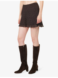 PRODUCT DETAILS - Reformation woven mini skirt - 100% viscose - Regular fit, mid-rise, elasticated waistband, polka dot pattern, lined - Machine wash cold - True to size - Size small: length 16in / 41cm - Model is 5ft 10in/1.78m and wears a size small - Lightweight, non-stretch Ref: R04535198