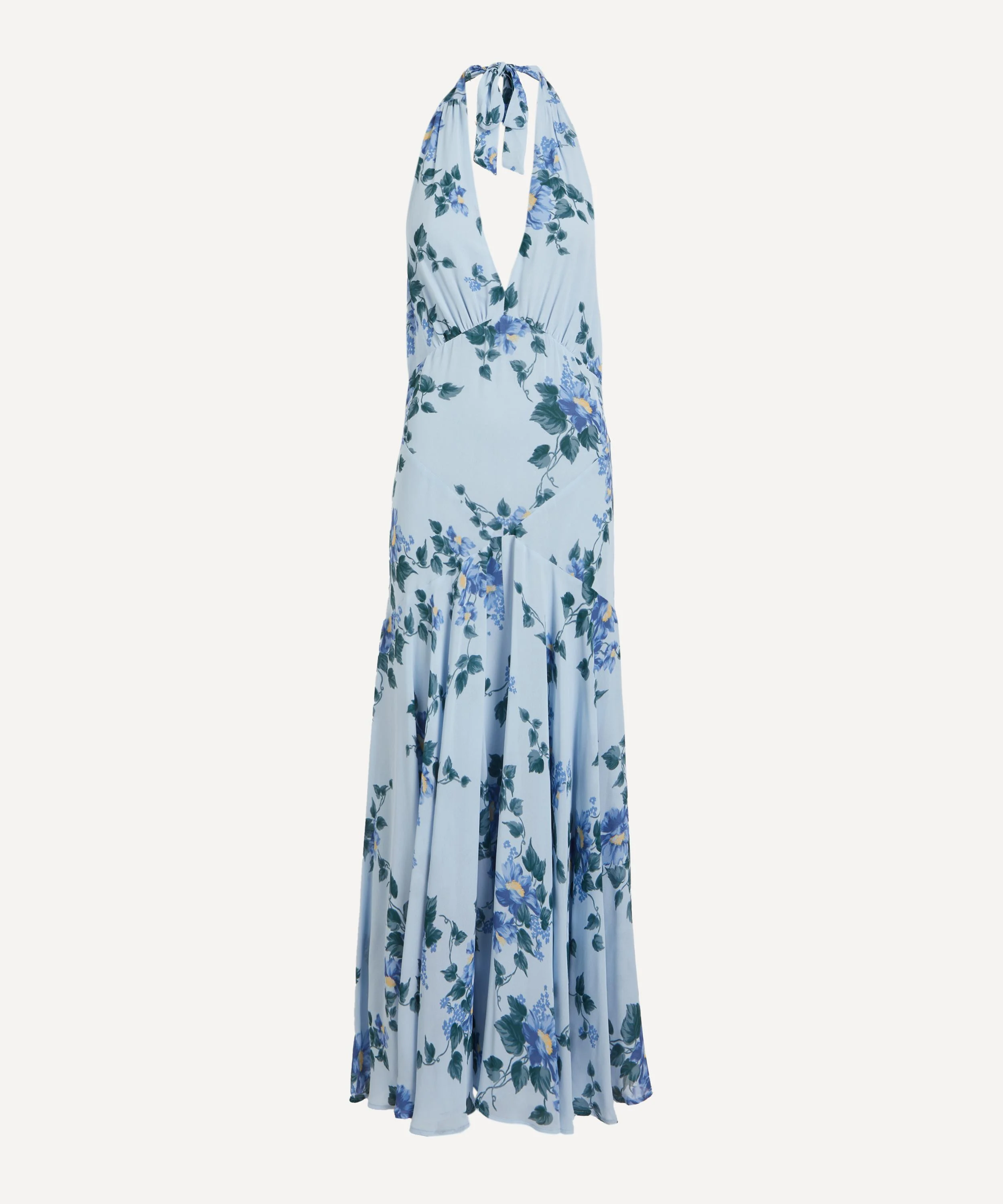 DETAILS Georgette dress Fitted throughout Midi length V-neckline Halter-neck ties A-line skirt SIZE & FIT Model is 175cm/5'9"; Chest: 81cm; Waist: 63.5cm; Hip: 92.5cm and wears a size 8 COMPOSITION & CARE 100% Viscose Dry clean