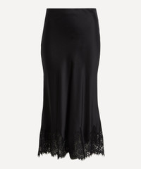 DETAILS Silk charmeuse skirt Midi length Relaxed drape Lace hem SIZE & FIT Model is 175cm/5'9"; Chest: 81cm; Waist: 63.5cm; Hip: 92.5cm and wears a size S COMPOSITION & CARE 100% Silk Dry clean