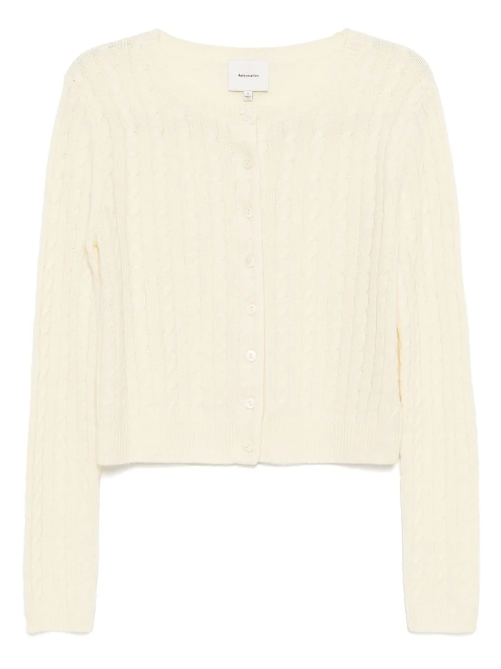 Clara cardigan Highlights - Light yellow - Front button fastening - Ribbed cuffs and hem - Cable knit Imported Composition Recycled Cashmere 95%, Cashmere 5% Washing instructions Hand Wash