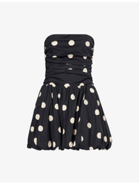 PRODUCT DETAILS - Reformation stretch-cotton mini dress - 98% cotton, 2% elastane; lining 98% cotton, 2% elastane - Concealed zip fastening at back - Slim fit, straight-across neckline, strapless, smock panel at back, all-over polka dot print, ruche, fully lined, puffball hem - Machine wash at 30°C - True to size - Size UK 8: length 25in / 63cm - Model is 5ft 10in/1.78m and wears a size UK 8 - Lightweight, stretchy Ref: R04535179