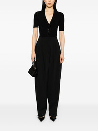 Danielle trousers Highlights - Black - Front button and zip fastening - Two side slash pockets - Two rear welt pockets Imported Composition Nylon 95%, Elastane 5% SIZE & FIT Model measurements Height 5 ft 10 in(1.77 m) Bust/Chest 30.31 in(77 cm) Hips 34.25 in(87 cm) Waist 25.19 in(64 cm) FittingInformation Designed for a relaxed tapered cut, these trousers allow for a close fit at the waist and offer a loose fit at the thighs, with a closer fit toward the ankles Made from a lightweight stretch fabric, this piece offers elasticity and flexibility when worn Washing instructions Machine Wash