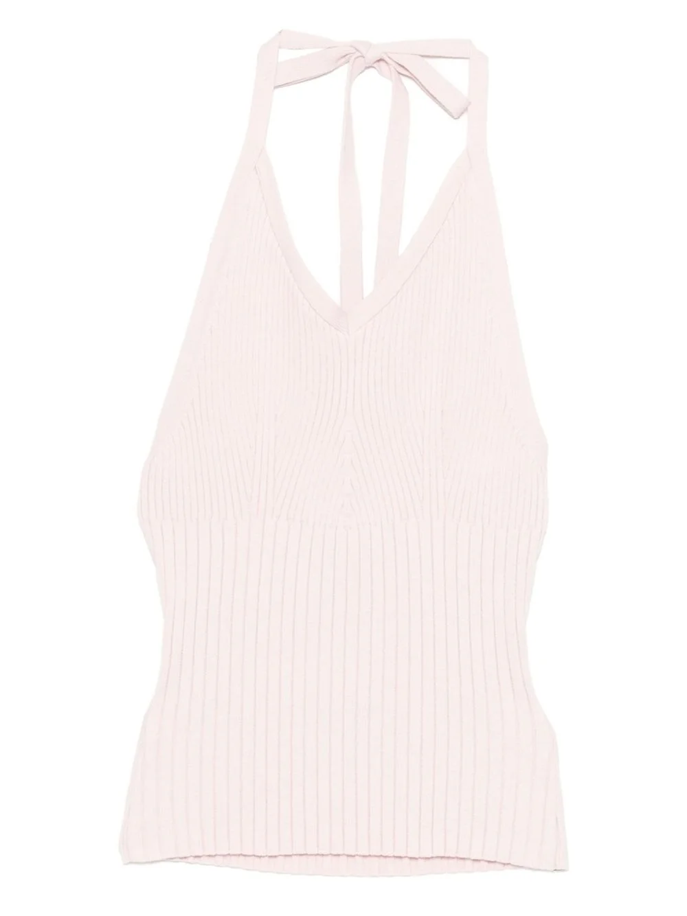 Delia ribbed halter top Highlights - Blush pink - Drawstring fastening - V-neck - Cable knit Imported Composition Cotton 95%, Nylon 4%, Elastane 1% Washing instructions Hand Wash