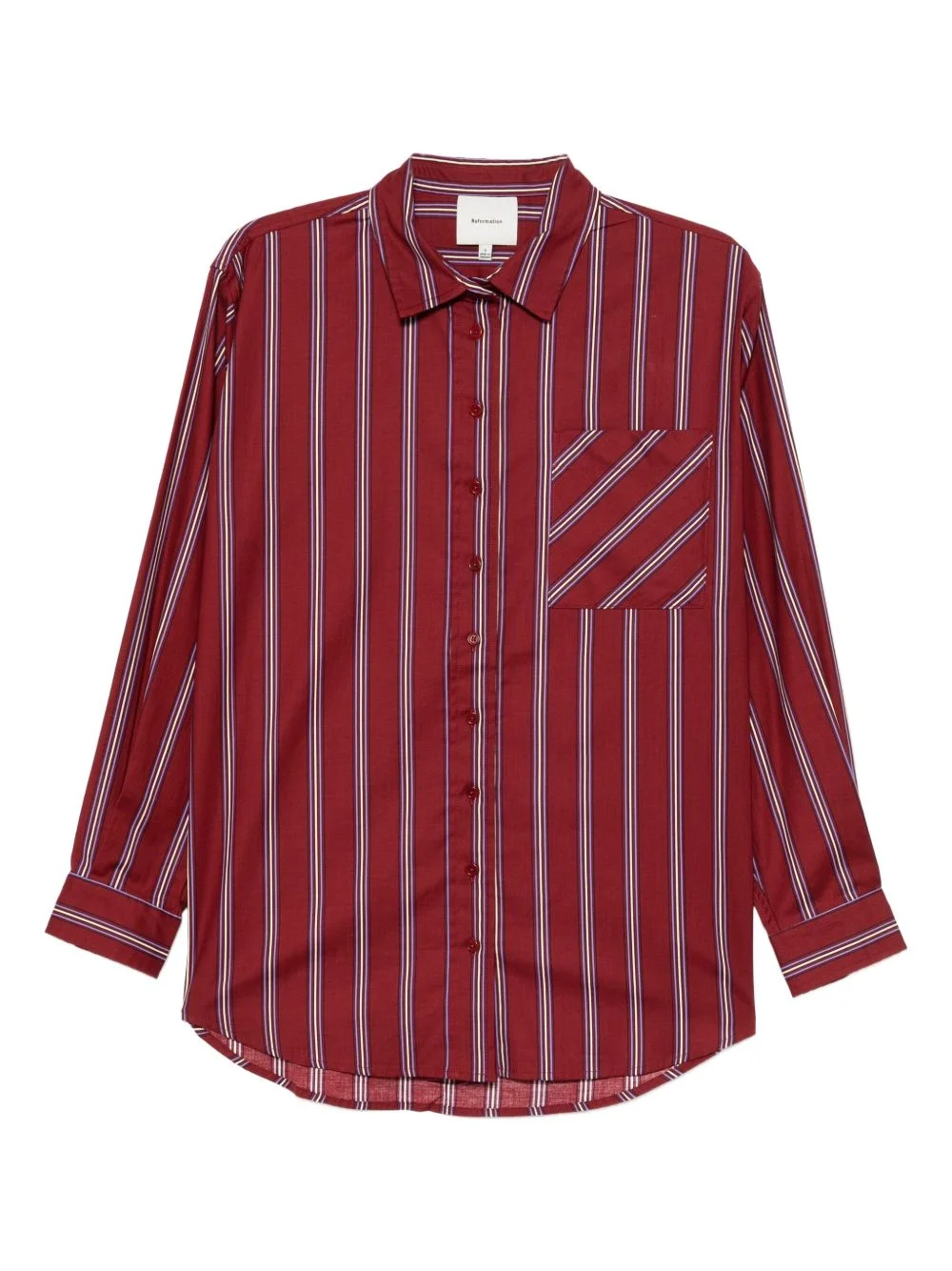 Eli shirt Highlights - Brick red - Front button fastening - Stripe print Imported Composition Organic Cotton 98%, Spandex/Elastane 2% SIZE & FIT Model measurements Height 5 ft 10 in(1.77 m) Bust/Chest 30.31 in(77 cm) Hips 36.22 in(92 cm) Waist 24.8 in(63 cm) FittingInformation Designed for a relaxed fit, this piece allows for comfort and movement when worn Made from a midweight stretch fabric, this piece offers elasticity and flexibility when worn Washing instructions Machine Wash