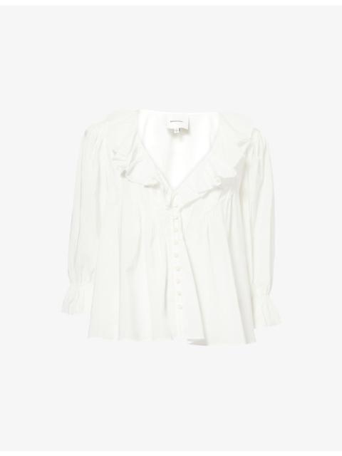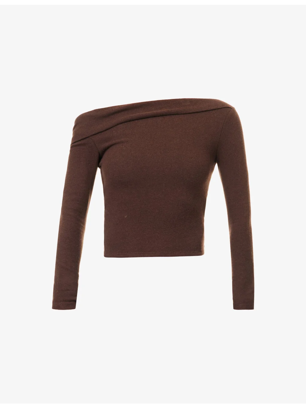 PRODUCT DETAILS - Reformation knitted top - 67% lyocell, 29% cotton, 4% elastane - Slim fit, asymmetric off-shoulder neckline, fold-over at neckline, long sleeves, brushed texture - Hand wash - True to size - Model is 5ft 10in/1.78m and wears a size small - Lightweight, stretchy Ref: R04535193