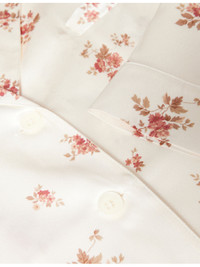 PRODUCT DETAILS - Reformation silk pyjama set - 100% silk - Button fastening - Top: loose fit, notched collar, long sleeves, one welt pocket at chest, - Bottoms: elasticated at waist, loose fit, two slip pockets at front - Dry clean - True to size - Model is 5ft 10in/1.78m and wears a size small - Lightweight, non-stretch Ref: R04549218