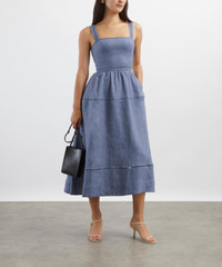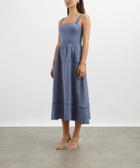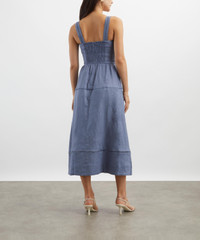 DETAILS Linen midi dress Straight neckline Back smocking Fitted bodice A-line skirt Ladder trims SIZE & FIT Model is 175cm/5'9"; Chest: 81cm; Waist: 63.5cm; Hip: 92.5cm and wears a size 8 COMPOSITION & CARE 100% Linen Dry clean
