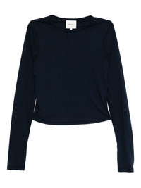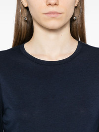 Ezra T-shirt Highlights - Navy blue - Crew neck - Long sleeves Made in United States Composition Organic Cotton 60%, TENCEL™ Lyocell (LENZING) 40% SIZE & FIT Model measurements Height 5 ft 10 in(1.77 m) Bust/Chest 30.31 in(77 cm) Hips 36.22 in(92 cm) Waist 24.8 in(63 cm) FittingInformation Designed for a close fit throughout Made from a midweight non-stretch fabric, this piece offers minimal elasticity when worn Washing instructions Machine Wash