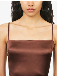 PRODUCT DETAILS - Reformation silk midi dress - 100% silk - Concealed zip fastening at back - Slim fit, straight-across neckline, adjustable shoulder straps, smock panel at back, all-over satin texture, split at back - Dry clean - True to size - Size UK 8: length 56in / 143cm - Model is 5ft 10in/1.78m and wears a size UK 8 - Lightweight, stretchy Ref: R04535174