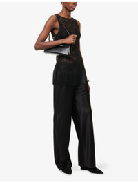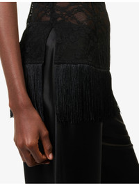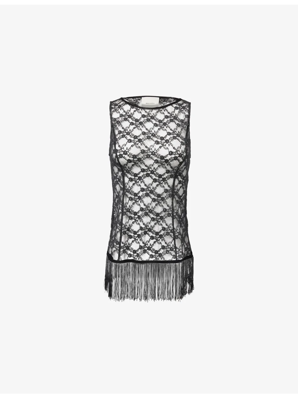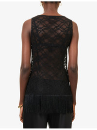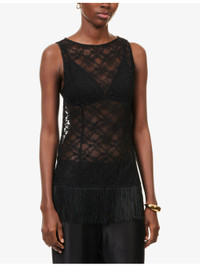 PRODUCT DETAILS - Reformation knit top - 91% nylon, 9% elastane - Slim fit, boat neckline, sleeveless, fringed trim at hem, all-over floral-embroidered lace, mesh design - Machine wash cold - True to size - Model is 5ft 10in/1.78m and wears a size small - Lightweight, slight stretch Ref: R04546892