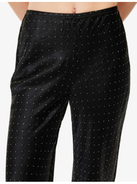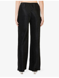 PRODUCT DETAILS - Reformation woven trousers - 100% acetate - Relaxed fit, high-rise, straight leg, elasticated waistband, all-over rhinestone embellishment, all-over satin texture - Dry clean - True to size - Size small: rise 11in / 28cm, inside leg 29in / 75cm, leg opening 20in / 51cm - Model is 5ft 10in/1.78m and wears a size small - Lightweight, non-stretch Ref: R04559807