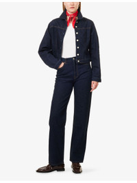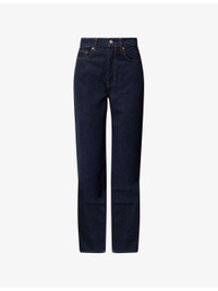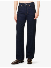 PRODUCT DETAILS - Reformation denim jeans - 100% cotton - Button and zip-fly fastening - Relaxed fit, high rise, straight leg, structured waistband with belt loops, five pockets, indigo wash, contrast stitching, branded hardware - Machine wash cold - True to size - Model is 5ft 10in/1.78m and wears a size 26 - Midweight, non-stretch Ref: R04535205